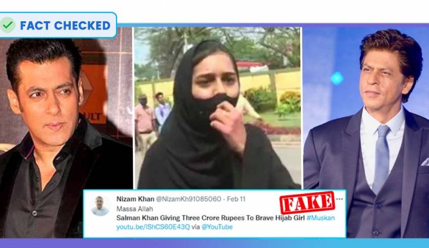 Amid the Hijab controversy, a video has been viral during which a bunch of Hindu college students will be seen hackling a Muslim lady and chanting ‘Jai Shree Ram’ slogan. The lady recognized as Muskan Khan is a second-year commerce scholar of PES college, Bangalore. Now a declare is being unfold on social media saying that Bollywood actor Shah Rukh Khan has introduced to offer Rs 5 crore to Muskan. Comparable claims have been made for Aamir Khan and Salman Khan as properly.