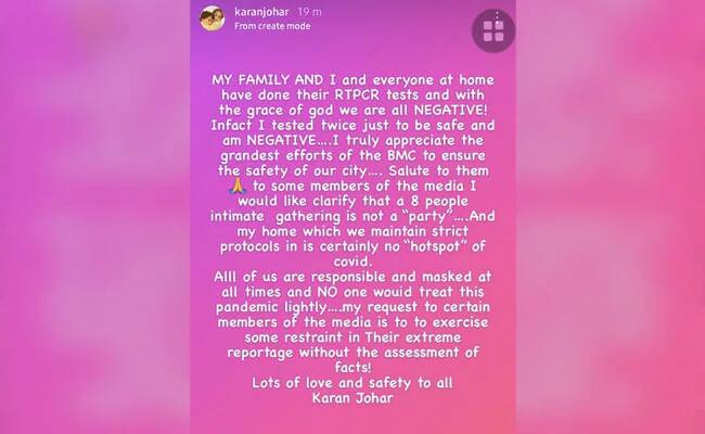 Karan Johar has issued a press release to announce that his members of the family and workers have examined destructive for coronavirus. As you would possibly conscious, Kareena Kapoor Khan and Amrita Arora had been examined constructive on Monday. They’d been at Karan Johar’s home on December 8 for dinner. In his assertion, Karan additionally mentioned that dinner for eight friends couldn’t be known as a ‘occasion’. He additionally denied his residence being a COVID ‘hotspot’. His assertion learn, “My household and I and everybody at residence have accomplished their RTPCR exams and with the grace of God we’re all NEGATIVE! The truth is I examined twice simply to be protected and am destructive. I really recognize the grandest efforts of the BMC to make sure the security of our metropolis…Salute to them. To some members of the media, I wish to make clear {that a} 8 individuals intimate gathering is just not a “occasion”…And my residence which we preserve strict protocols is definitely no “hotspot” of COVID. All of us are accountable and masked always and NO one would deal with that pandemic calmly… My request to sure members of the media is to train some restraint of their excessive reportage with out the evaluation of information. A lot of love and security to all.”