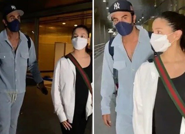Ranbir Kapoor was seen in blue denim shirt, matching pants, a cap and white sneakers. He carried a bag pack. Alia Bhatt donned an all black ensemble with a white jacket and matching sneakers. She carried a crossbody bag. Each of them wore face masks.